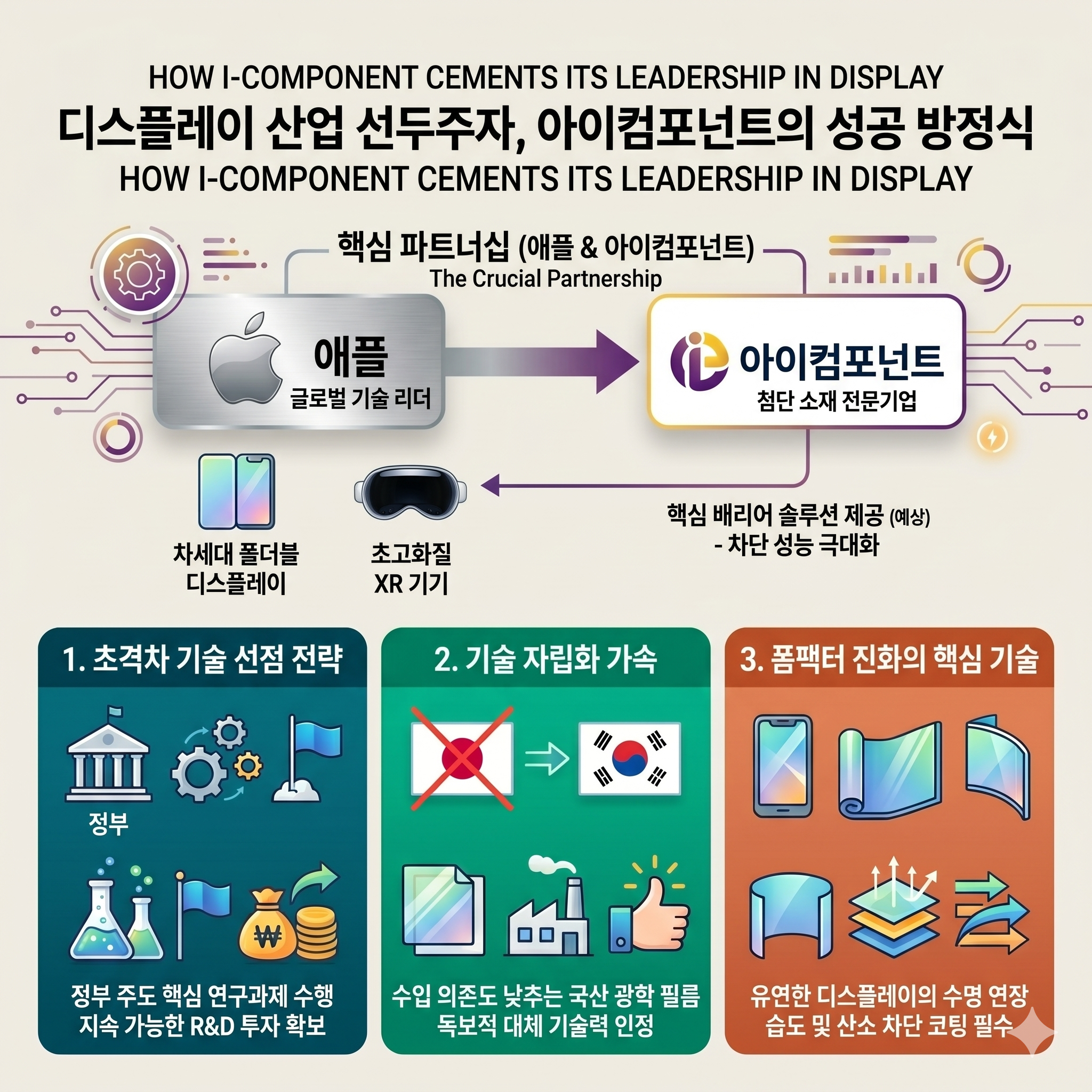 아이컴포넌트는 단순한 부품사를 넘어, 대한민국 디스플레이 산업 기술력의 상징과도 같은 기업입니다. 시장을 주도할 만한 강력한 재료와 테마 모멘텀을 모두 갖추고 있죠.