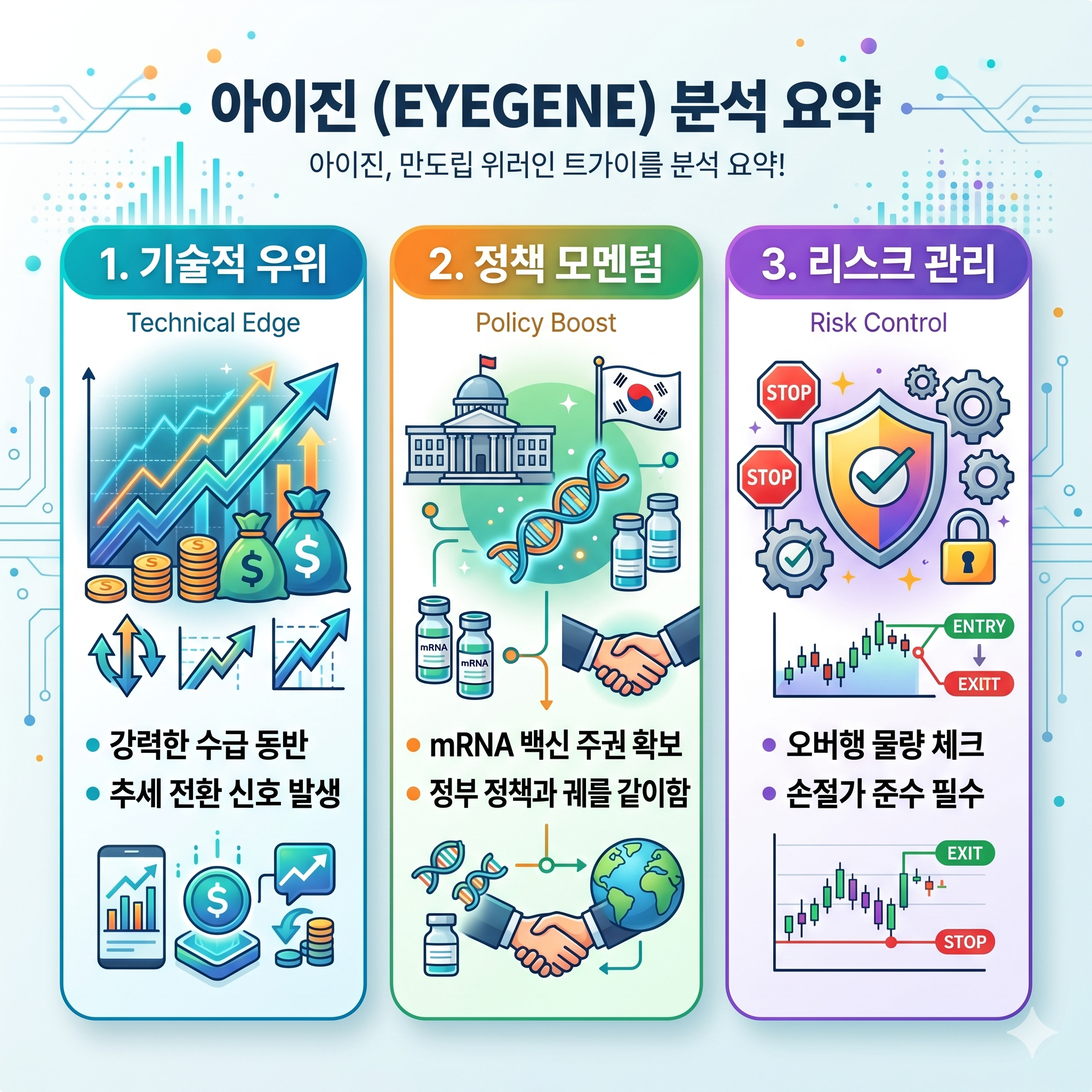 현재 전 세계적으로 바이오 안보(Bio-Security)가 강조되면서 정부의 백신 주권 확보를 위한 지원 사격이 계속되고 있습니다. 보건복지부의 백신 임상 지원금 집행 소식과 더불어 글로벌 빅파마와의 기술 수출(L/O) 논의가 수면 위로 떠오를 때마다 아이진은 민감하게 반응하고 있습니다.