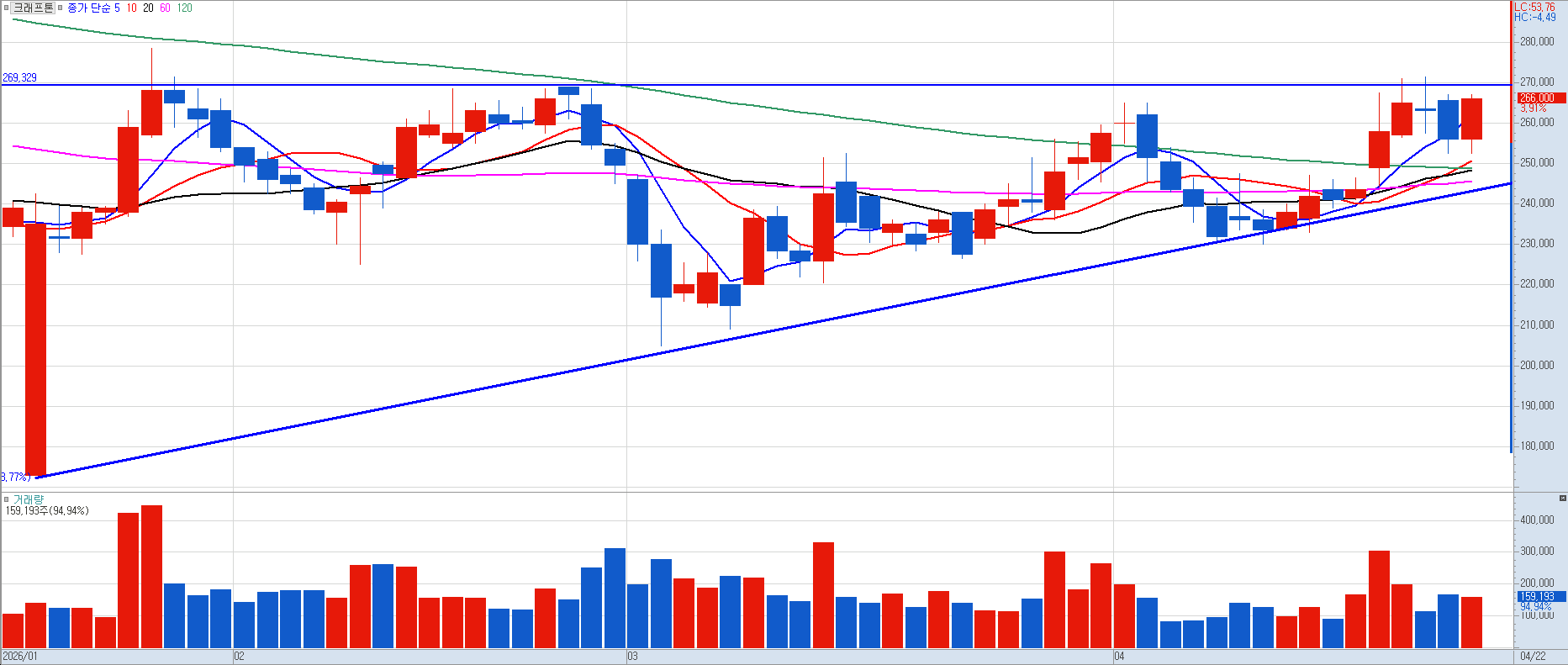 분석 기준일인 2026년 4월 22일 수요일, 시장의 관심이 집중된 가운데 크래프톤 주가는 전일 대비 4.31% 상승 마감하며 긍정적인 에너지를 발산했습니다.